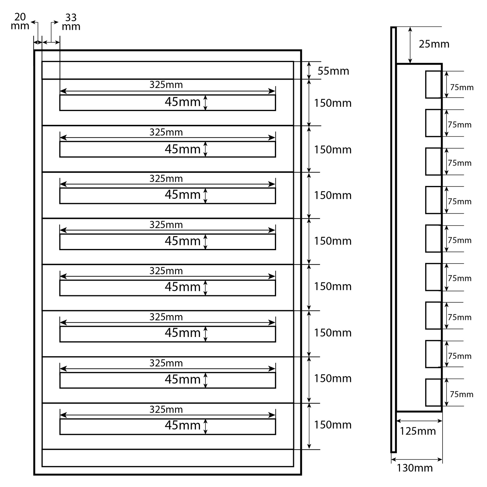• Dieser Unterputz Verteilerkasten vefügt über 8 Reihen mit insgesamt 144 Modulen. Er ist aus 1 mm dickem Stahlblech gefertigt und bewährt sich selbst an den anspruchsvollsten Arbeitsplätzen.