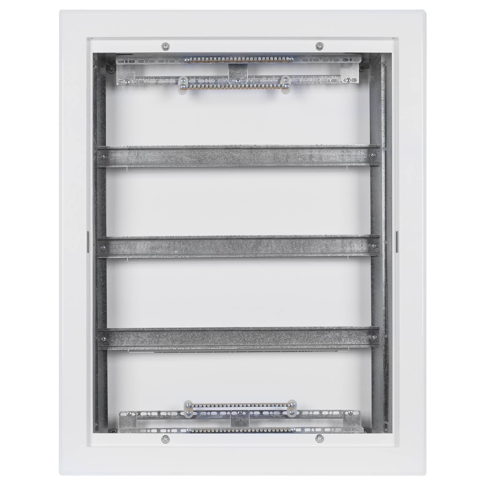 Dieser zuverlässige Unterputz Verteilerschrank ist mit 3 Reihen für insgesamt 72 Module ausgestattet. Er ist aus 1 mm dickem Metall gefertigt und bewährt sich auch an den anspruchsvollsten Arbeitsplätzen. Zudem garantiert er eine langjährige Lebensdauer. Die Pulverbeschichtung der Komponenten schützt sie vor Korrosion.
