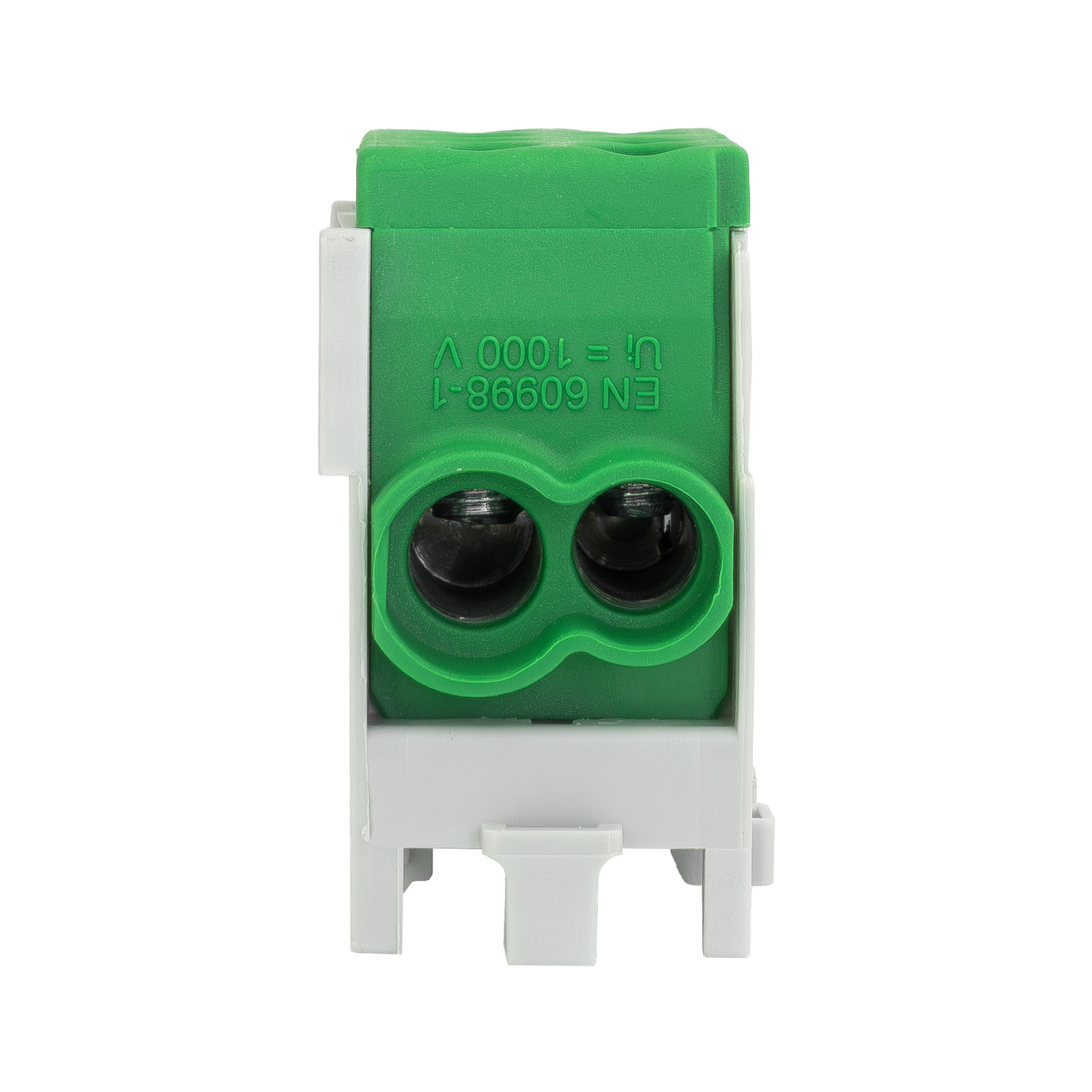 Hauptleitung-Abzweigklemme 1P 1,5-25mm2 1,5-16mm2 Pollmann HLAK 25-1/2 M2 in Grün für DIN-Schienenmontage.