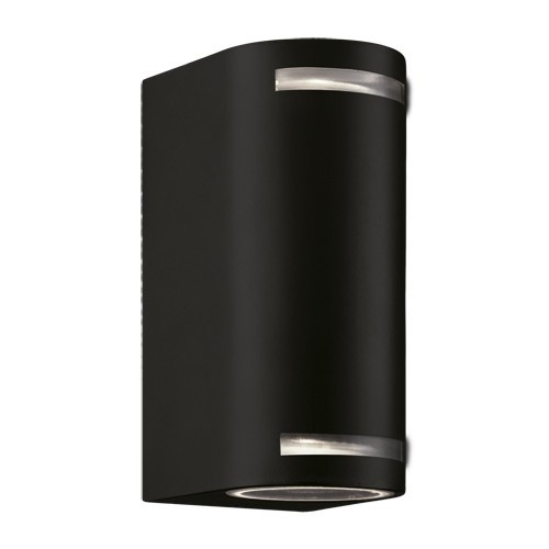 Die Wandlampe besteht aus gegossenem Aluminium und Glas in Graphit und hat die Schutzart IP54, für den Innen- und Außenbereich. Die Gartenlampe mit 2xGU10 Fassung ermöglicht die Montage einer Lichtquelle mit maximaler Leistung von 2x35W.