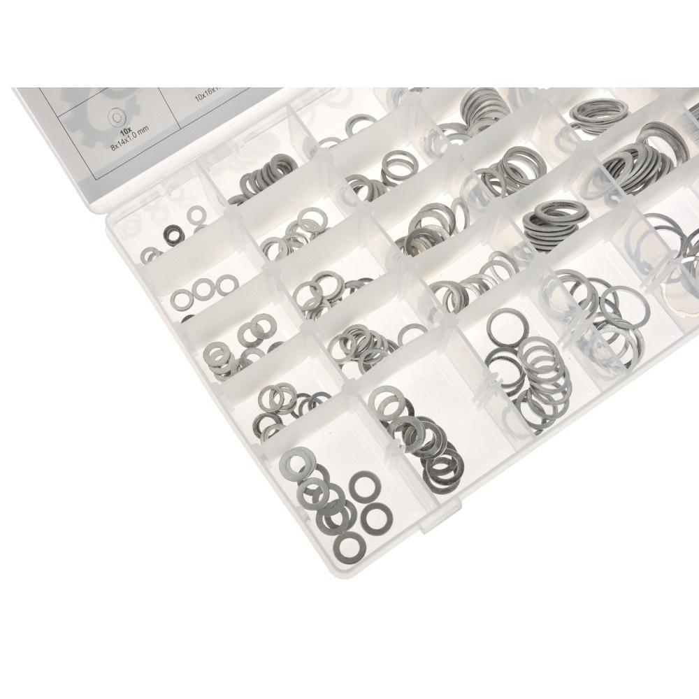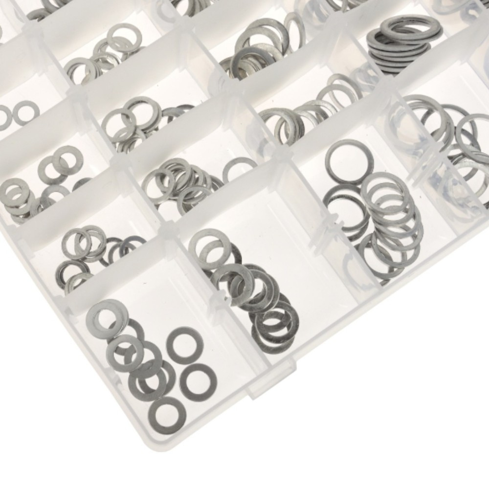 - Set mit 300 Dichtringen aus Aluminium in 30 verschiedenen Größen. Kunststoffbehälter mit praktischen Fächern.