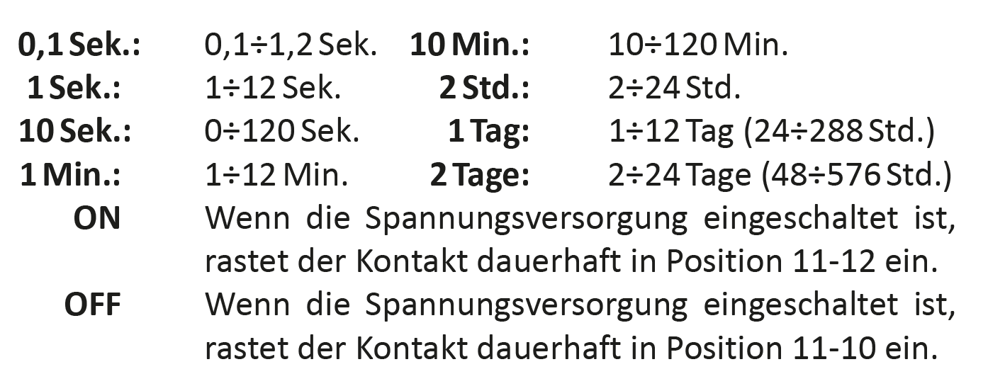 Achtung! Wenn das Relais im eingestellten Zeitbereich eingeschaltetwird, ist es möglich, die Zeit kontinuierlich im Bereich der Zeiteinstellwerte 1÷12 einzustellen.